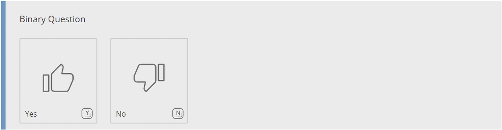 Nosso novo Tipo de pergunta binária pede que os entrevistados selecionem entre duas respostas. Por exemplo: